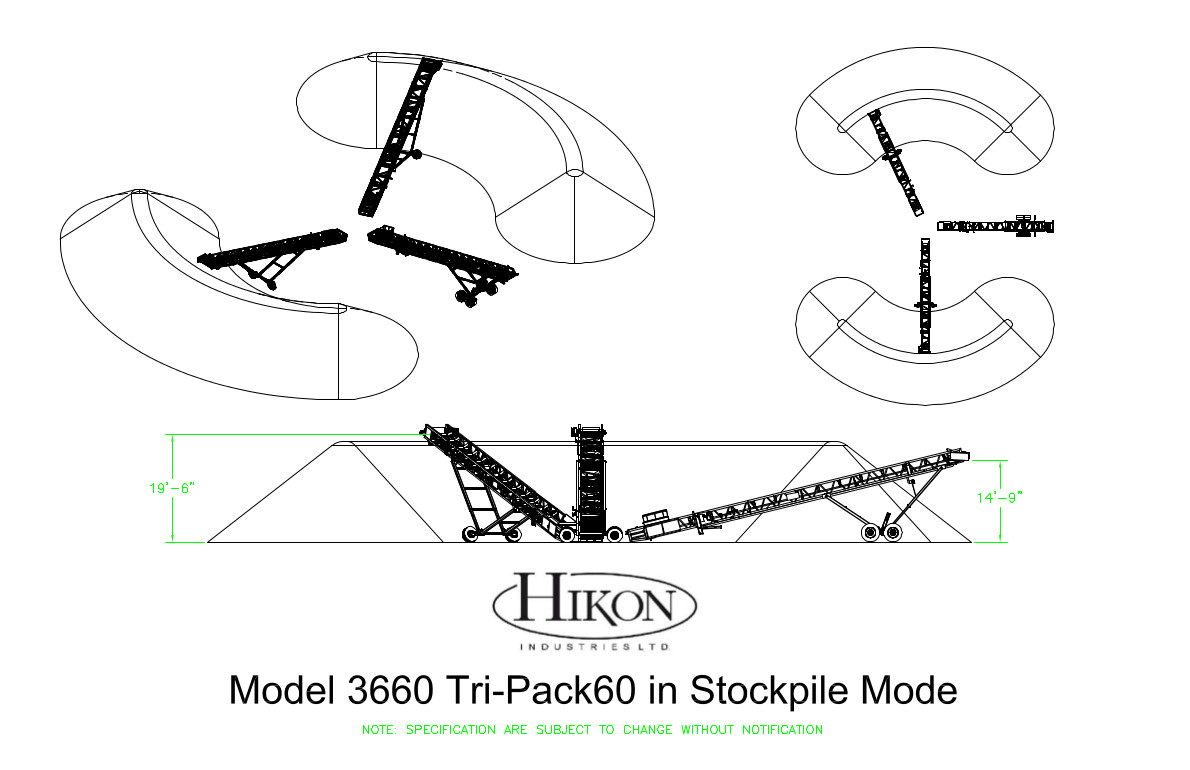- Use as Three Product Transfer Conveyors or Three Product Stacking Conveyors
